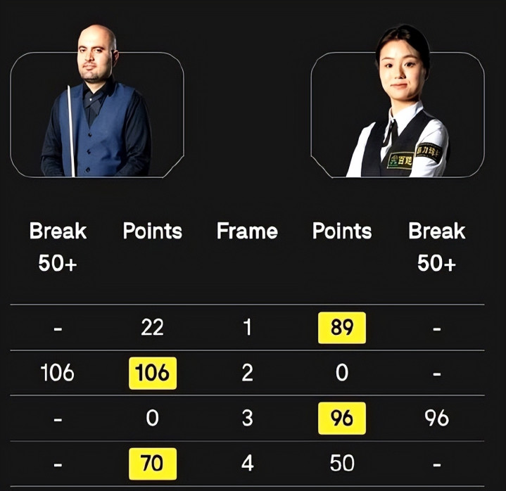 这比分放男子组都算亮眼,更别说她是从资格赛打上来的女将。