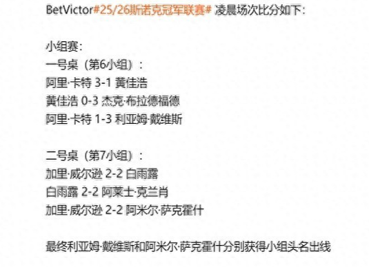 同组的阿米尔虽然被白雨露、加里轮流揍,但人家逮着软柿子阿莱士刷了个3-1,5分晋级。